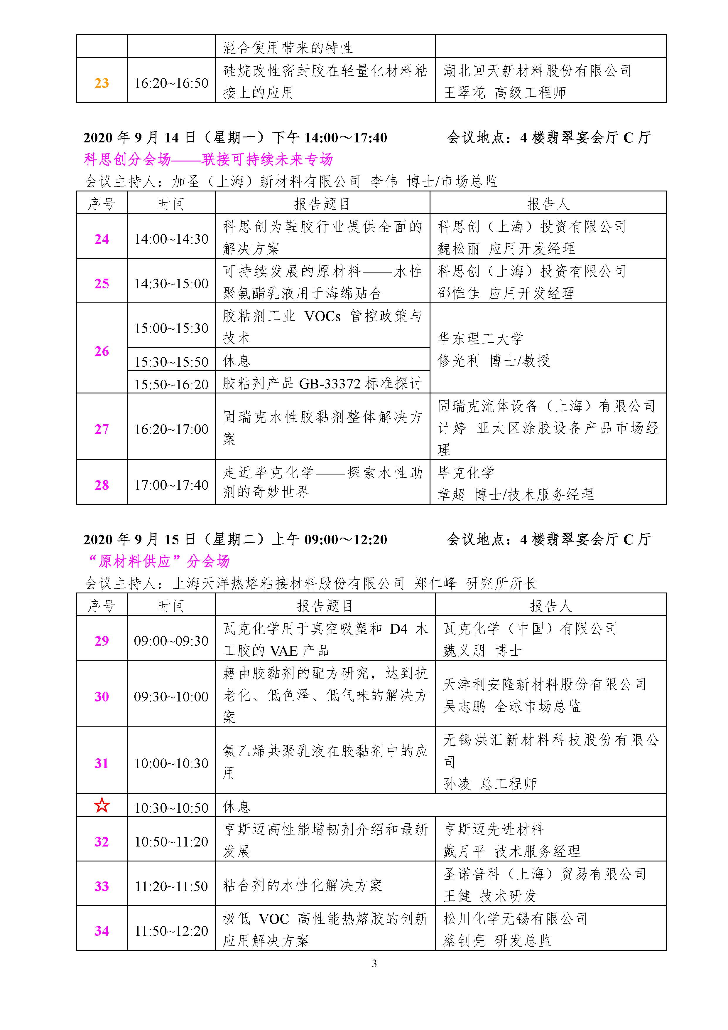 第23届中国胶粘剂和胶粘带行业年会 会议日程安排