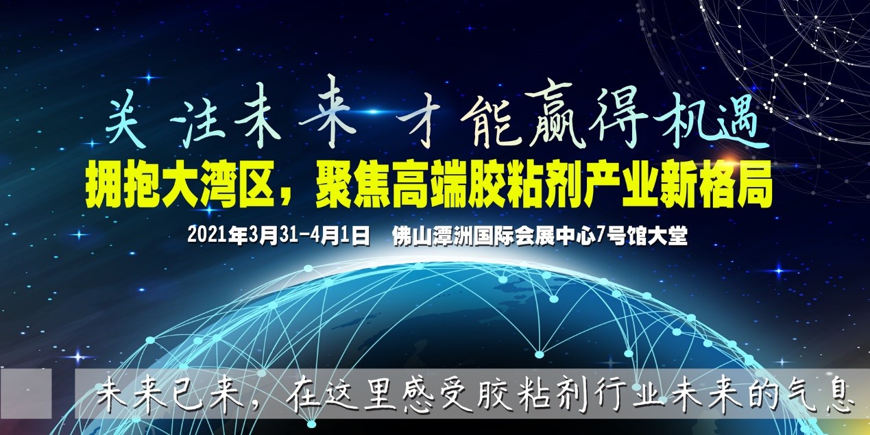 在3月31日,2021中国国际胶粘剂及密封剂(大湾区)展览会将在广东佛山潭洲国际会展中心盛大开幕。届时,“一展+两会”模式将会吸引大量胶粘剂和胶粘带的原料、生产企业和下游用户。中国胶粘剂和胶粘带工业协会将在佛山“胶粘剂及密封剂(大湾区)先进技术发展论坛”会议上,倾力解读我国胶粘剂和胶粘带行业“十三五”发展总结以及行业“十四五”发展纲要,以期更好的促进行业的发展,引领行业的产业升级。
