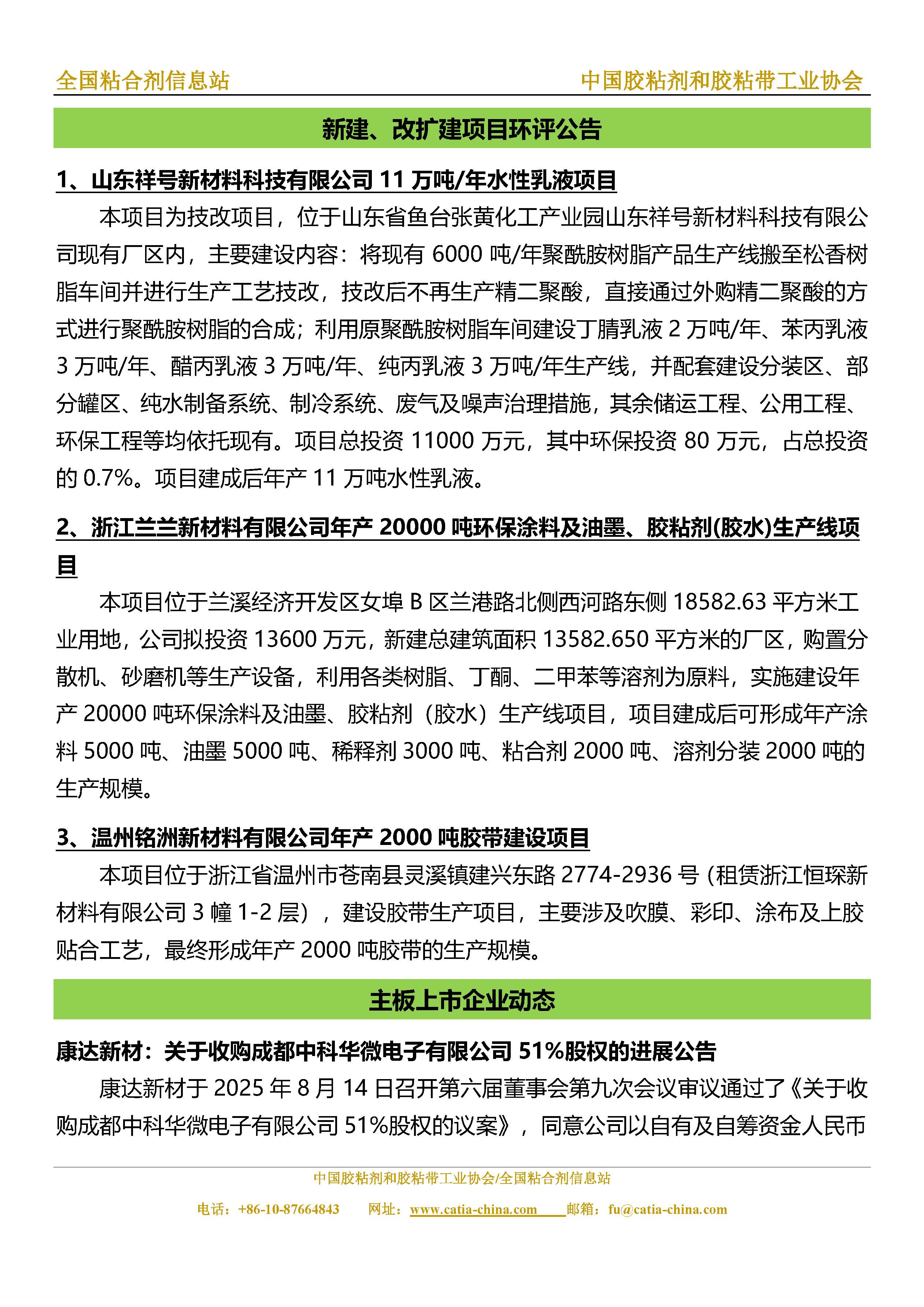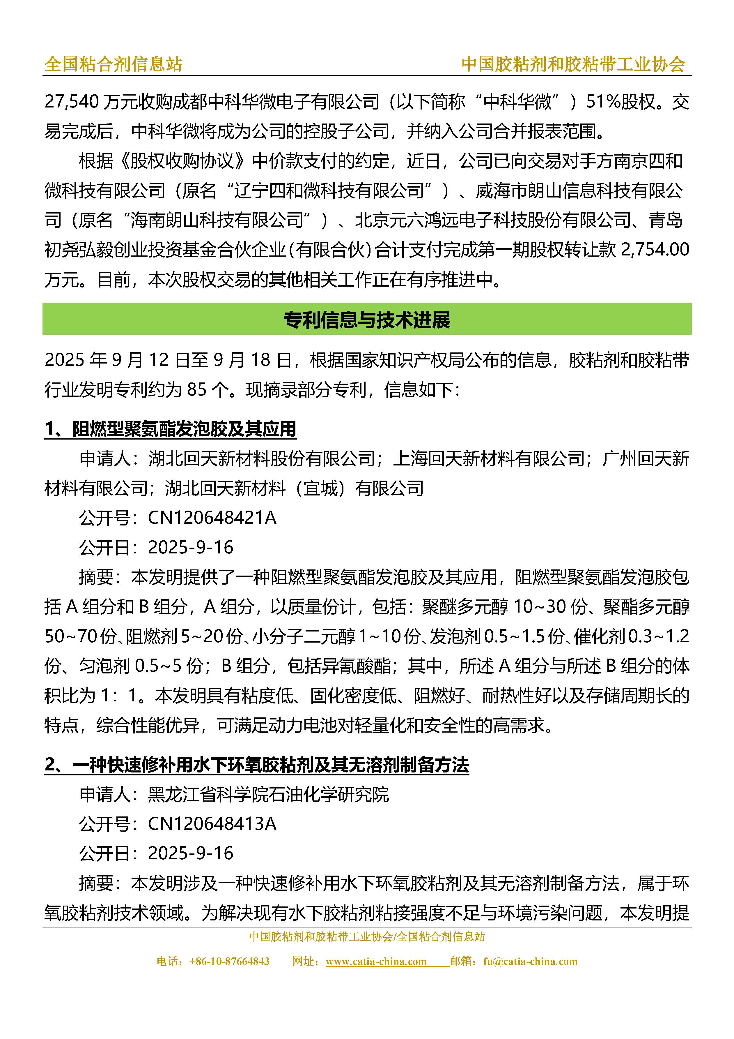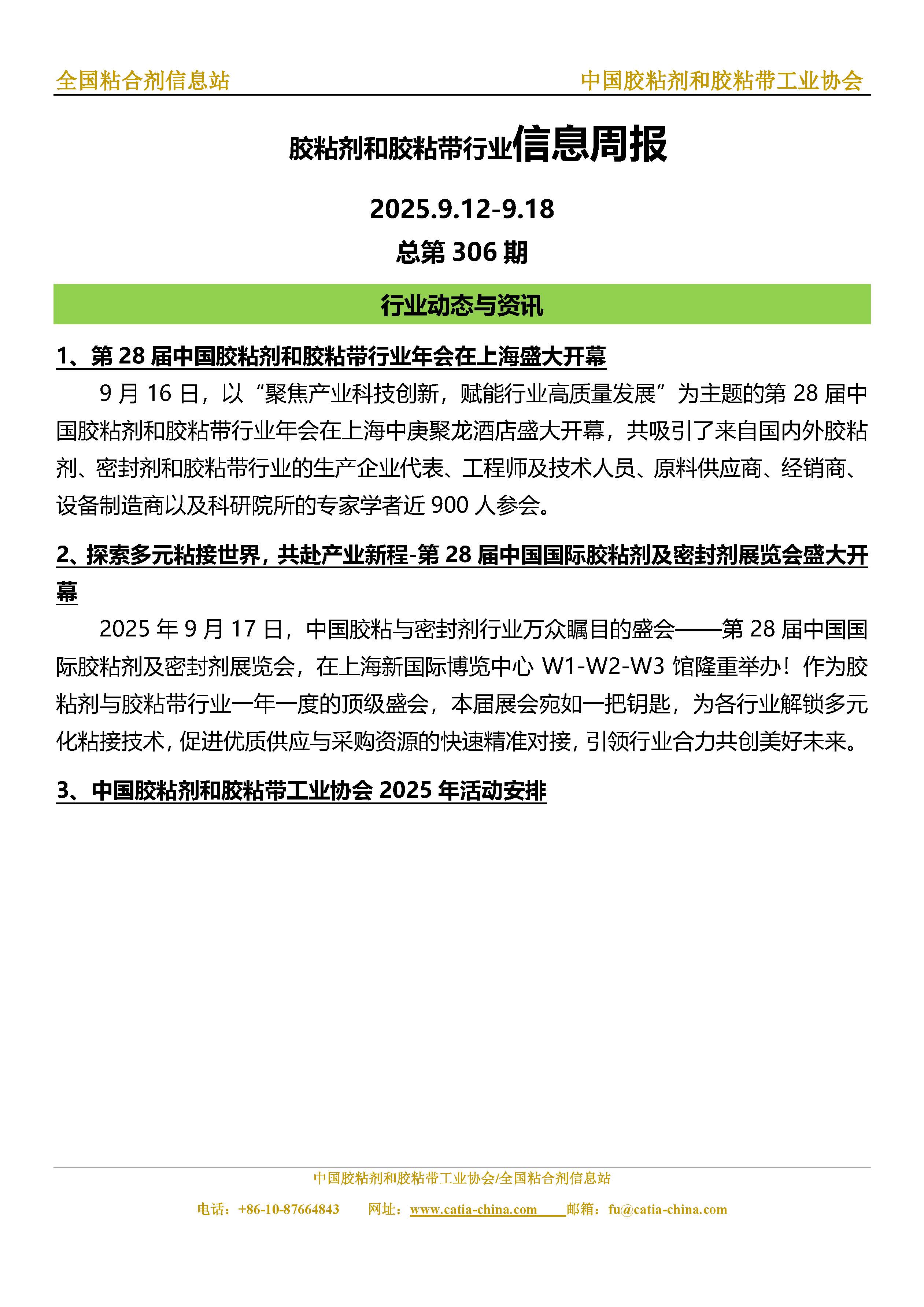 胶粘剂和胶粘带行业信息周报(2025.9.12-9.18)总第306期