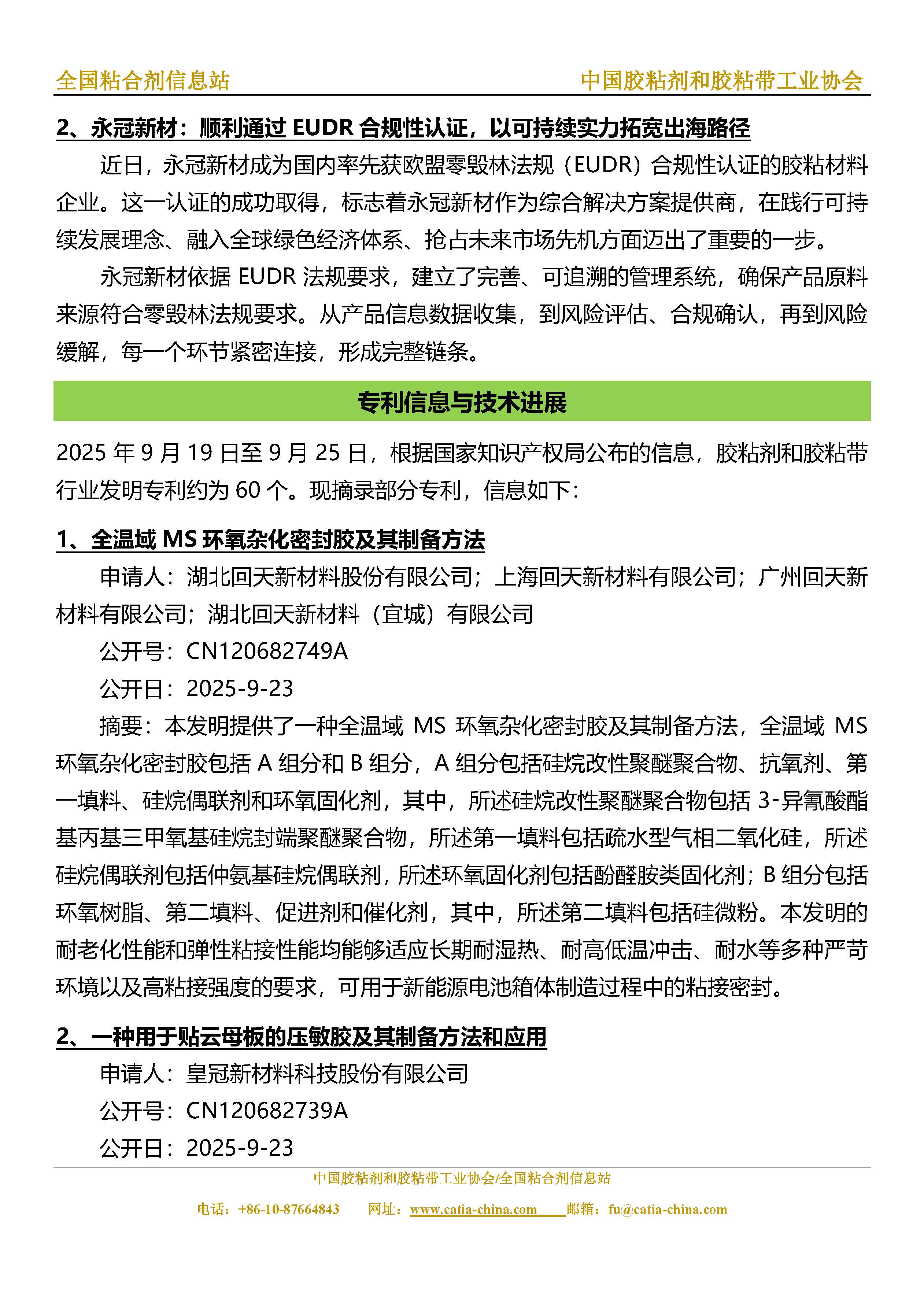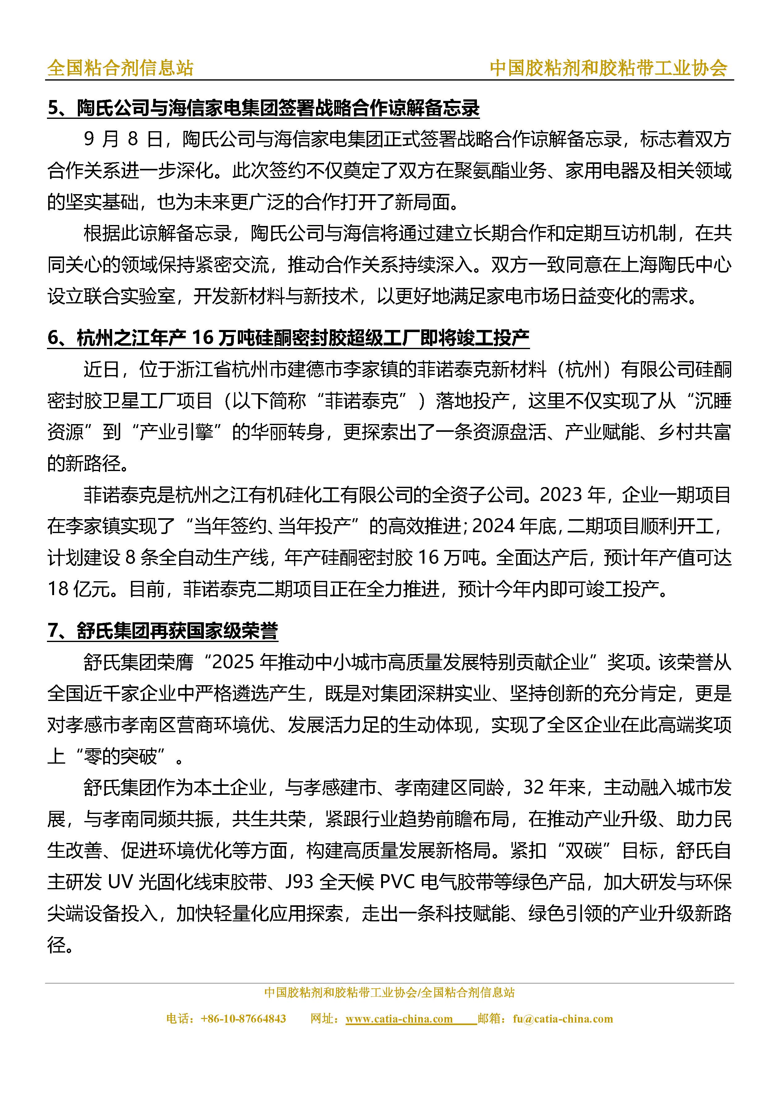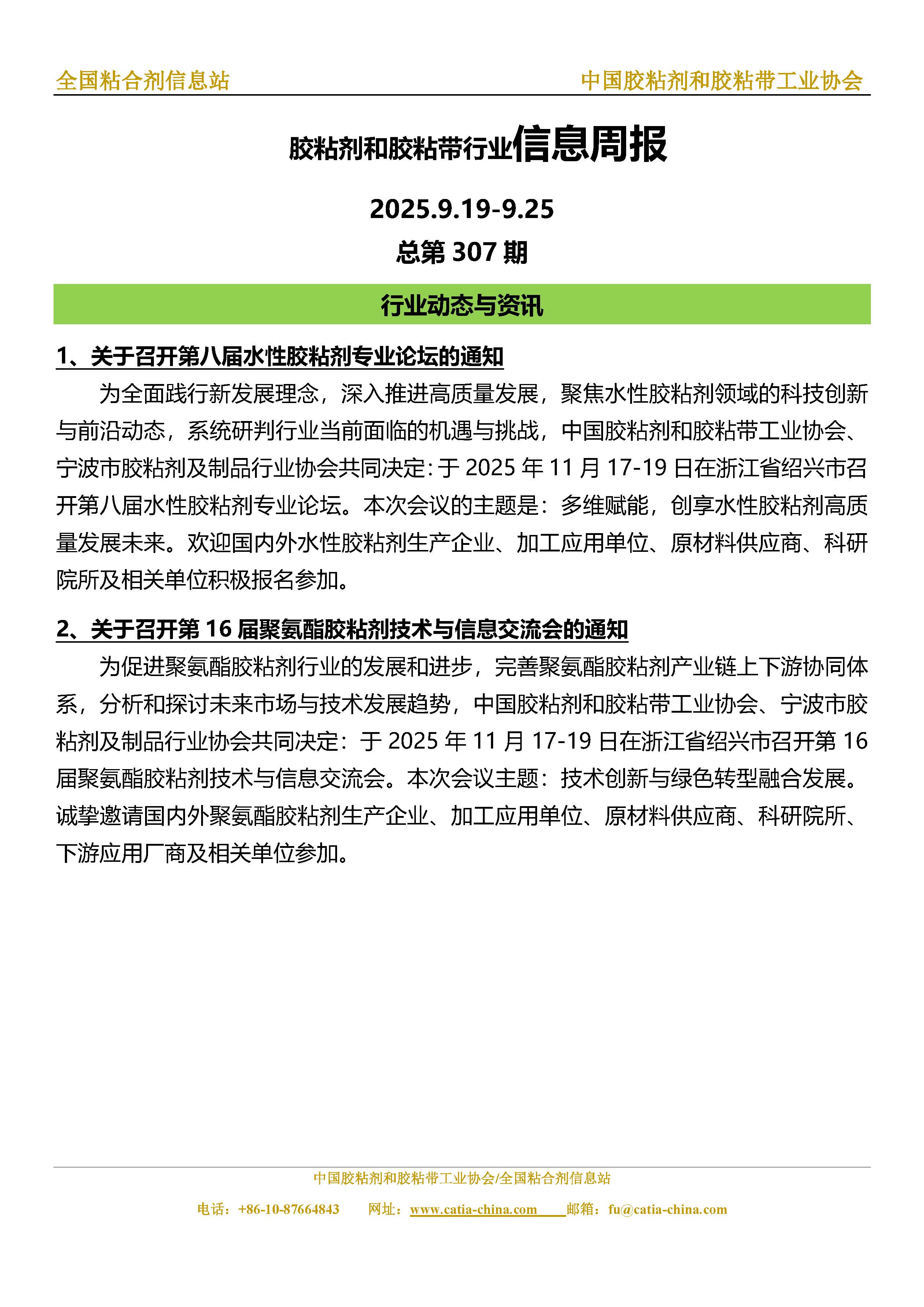 胶粘剂和胶粘带行业信息周报(2025.9.19-9.25)总第307期