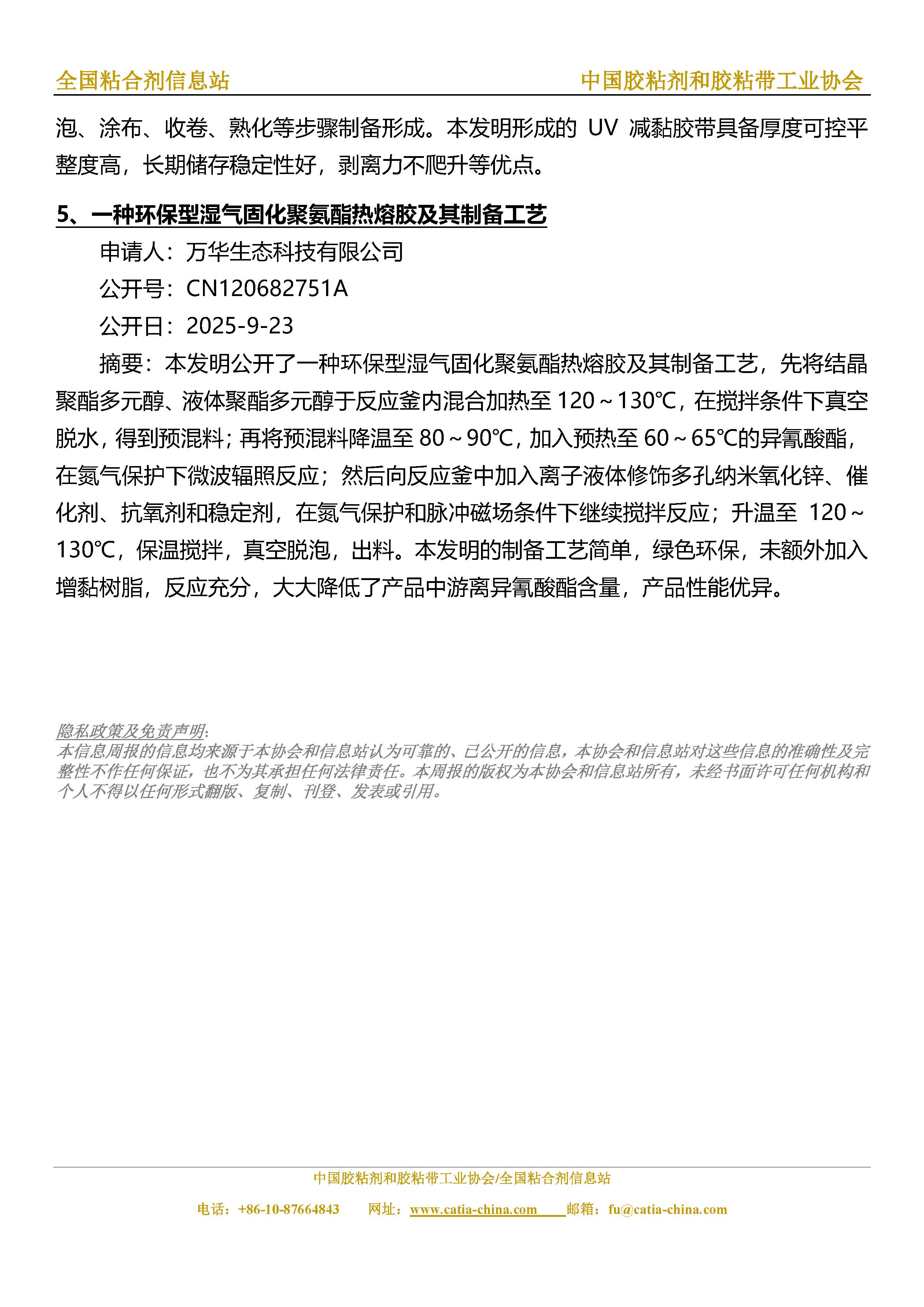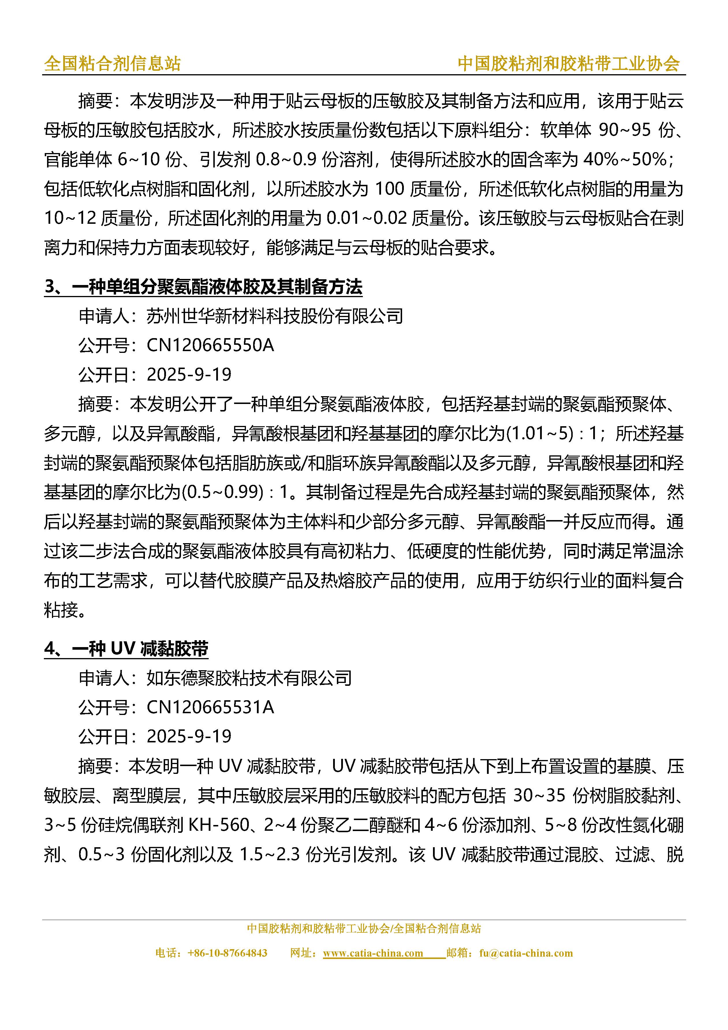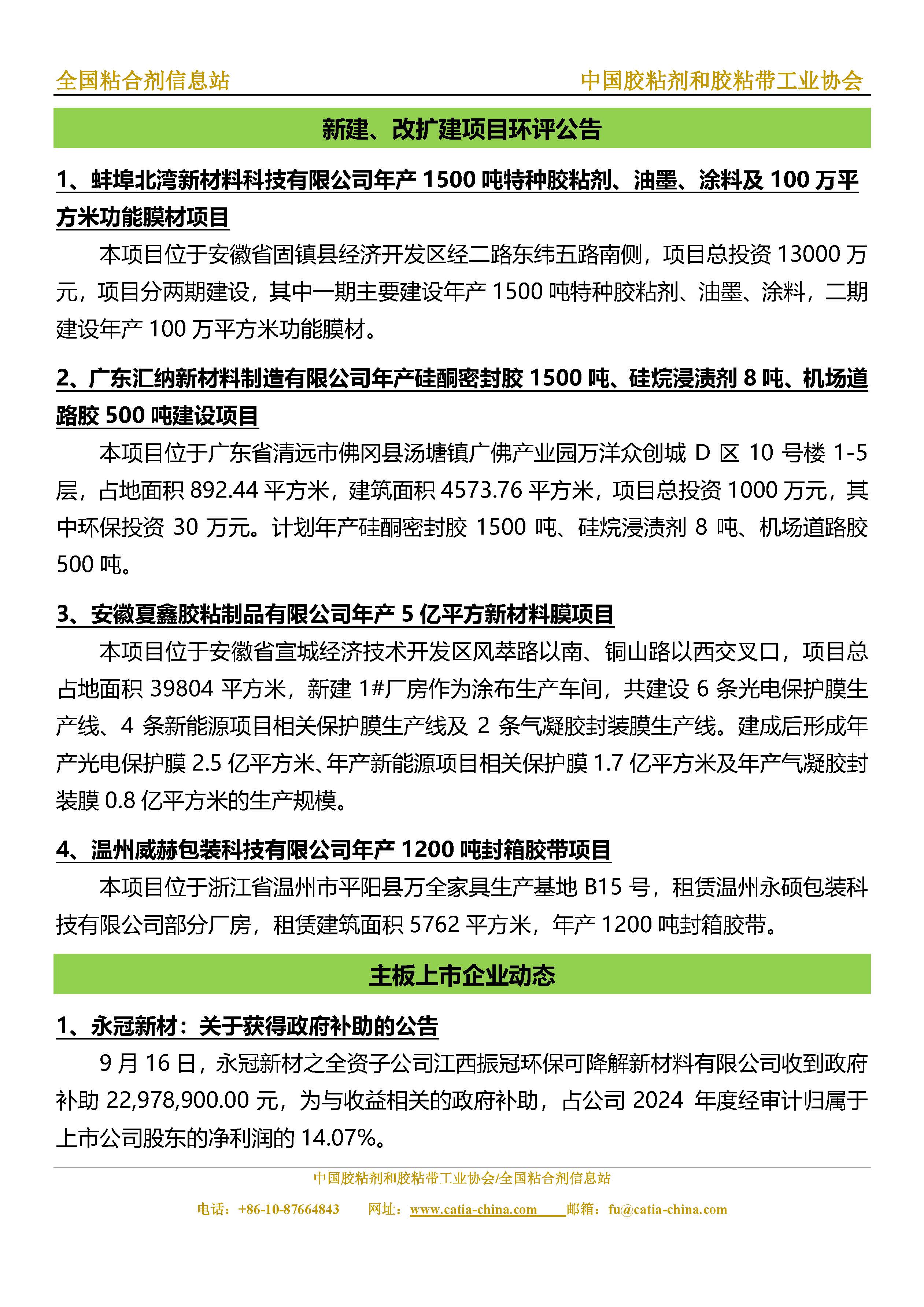 胶粘剂和胶粘带行业信息周报(2025.9.19-9.25)总第307期