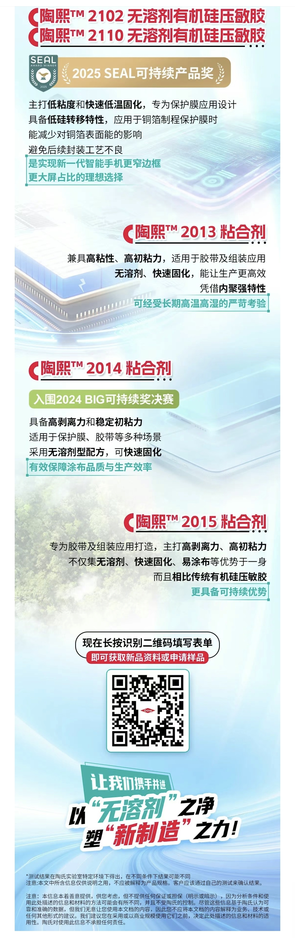陶氏公司全球亮相陶熙™无溶剂有机硅压敏胶系列产品