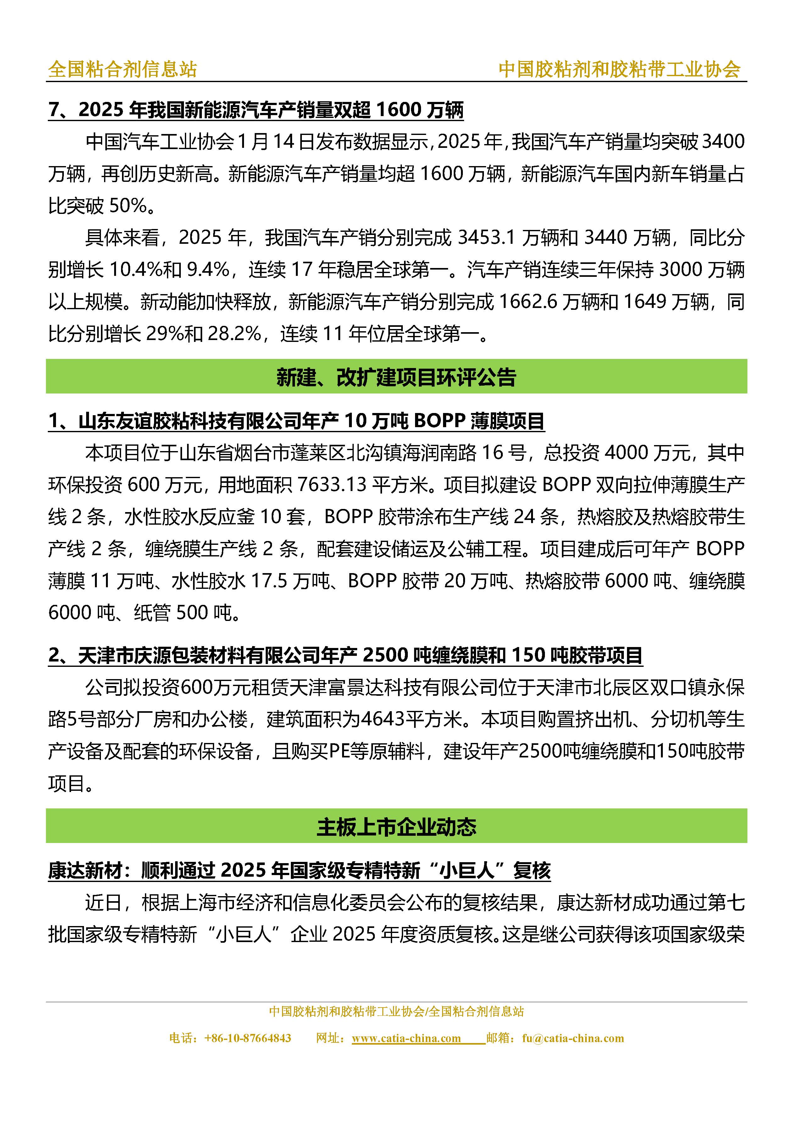 胶粘剂和胶粘带行业信息周报