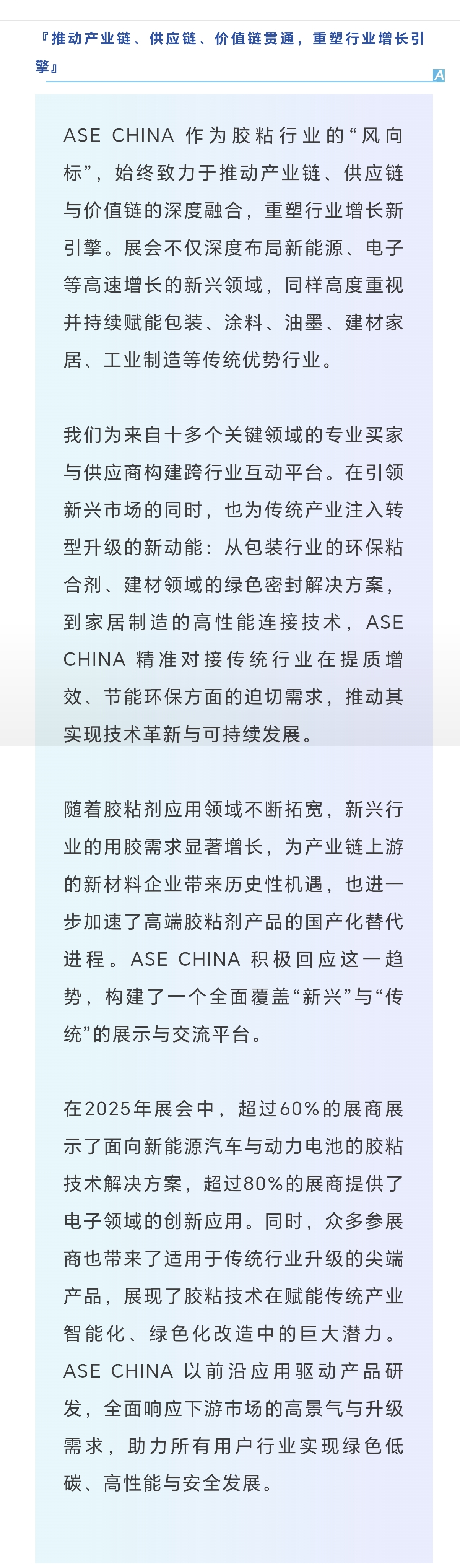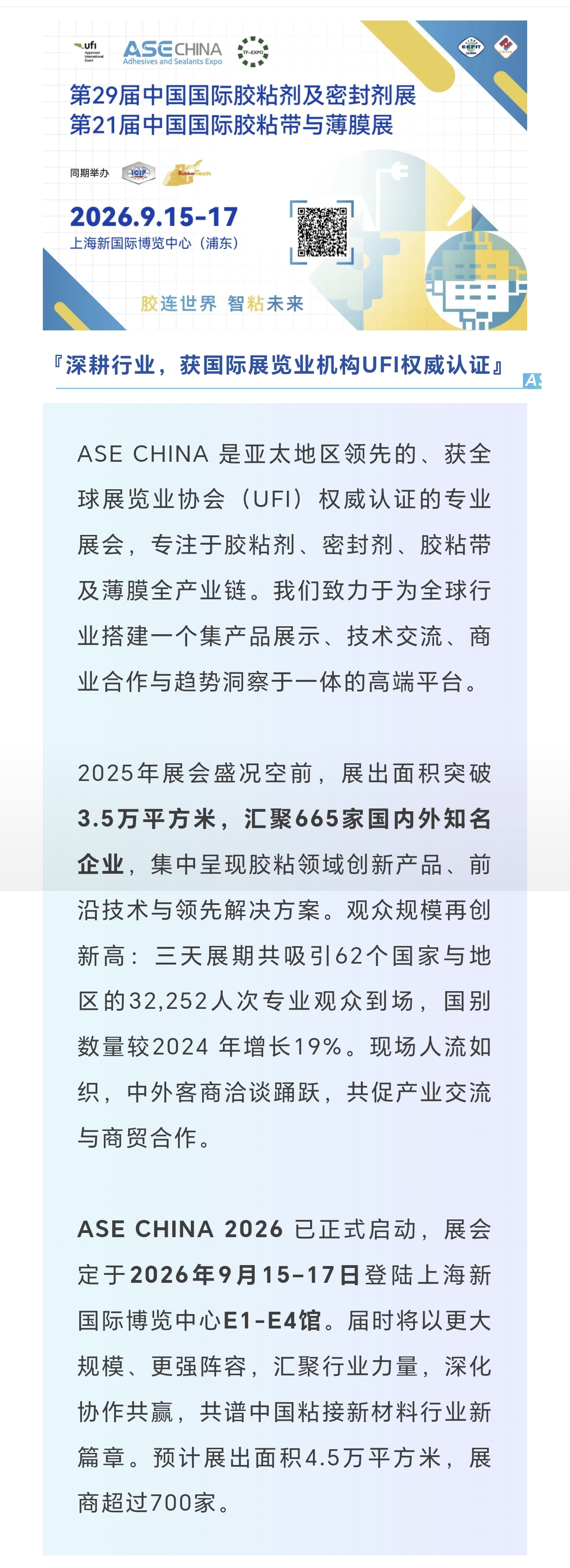 展会介绍丨第29届中国国际胶粘剂及密封剂展览会 ASE CHINA 2026