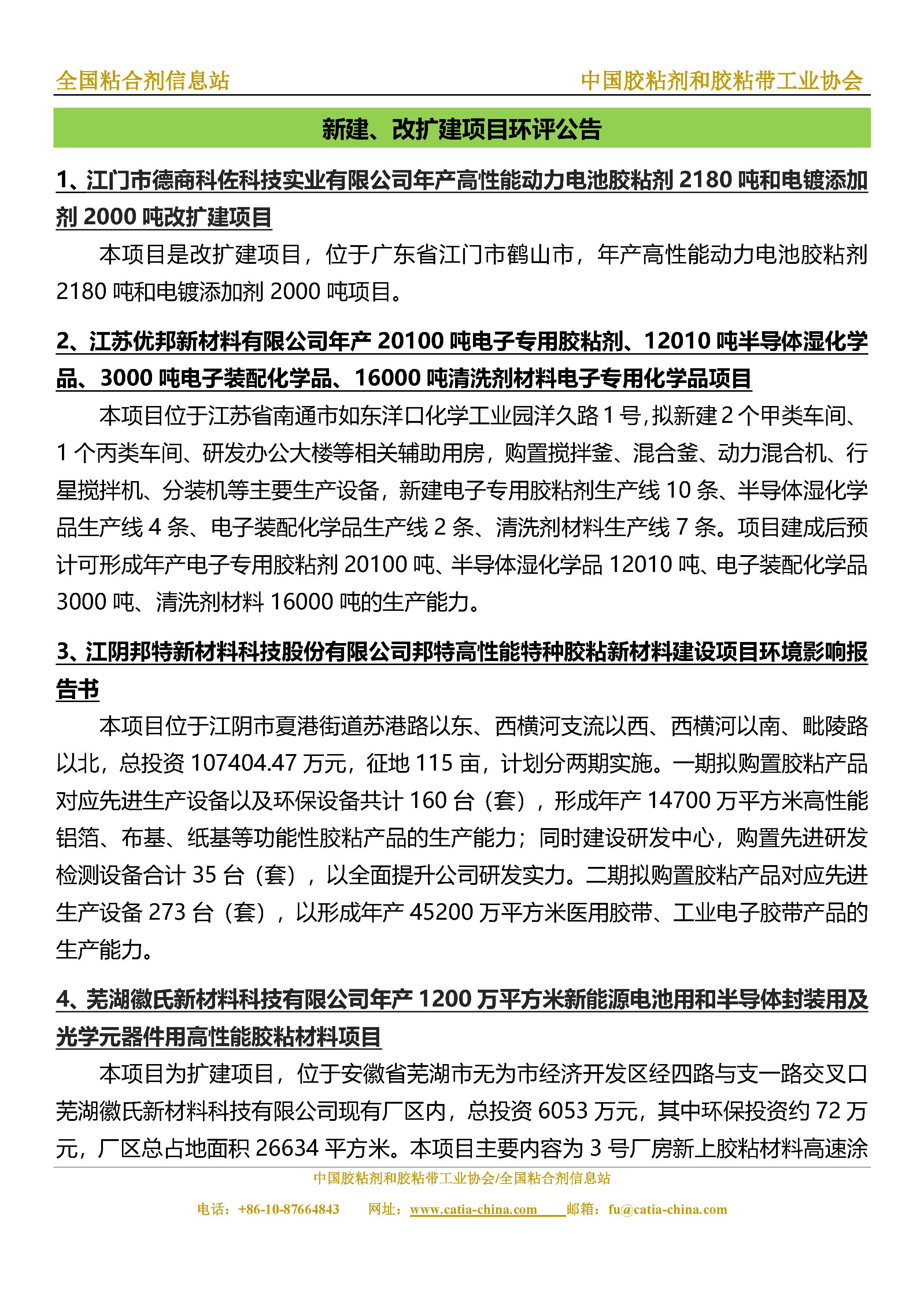 胶粘剂和胶粘带行业信息周报