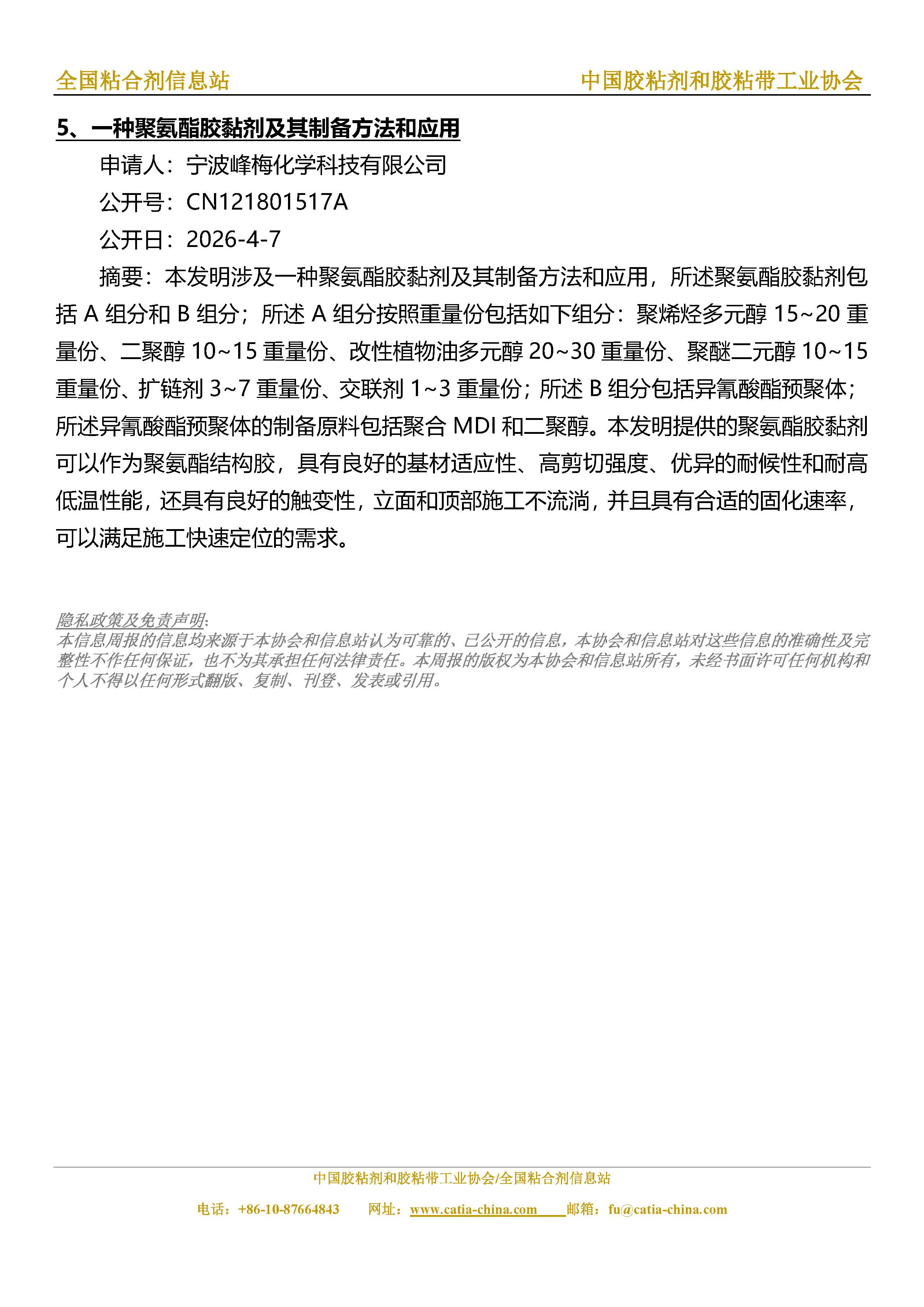 胶粘剂和胶粘带行业信息周报