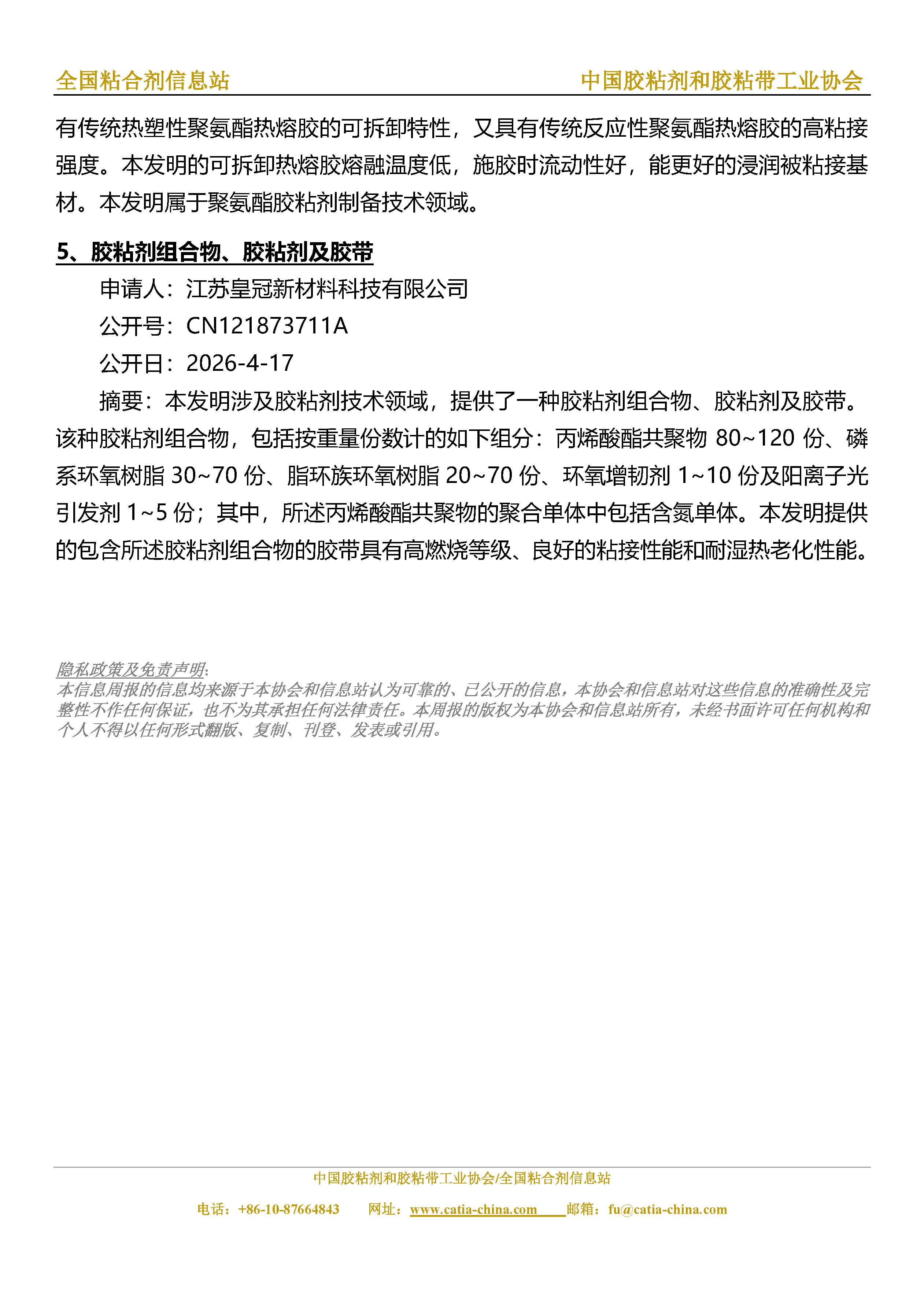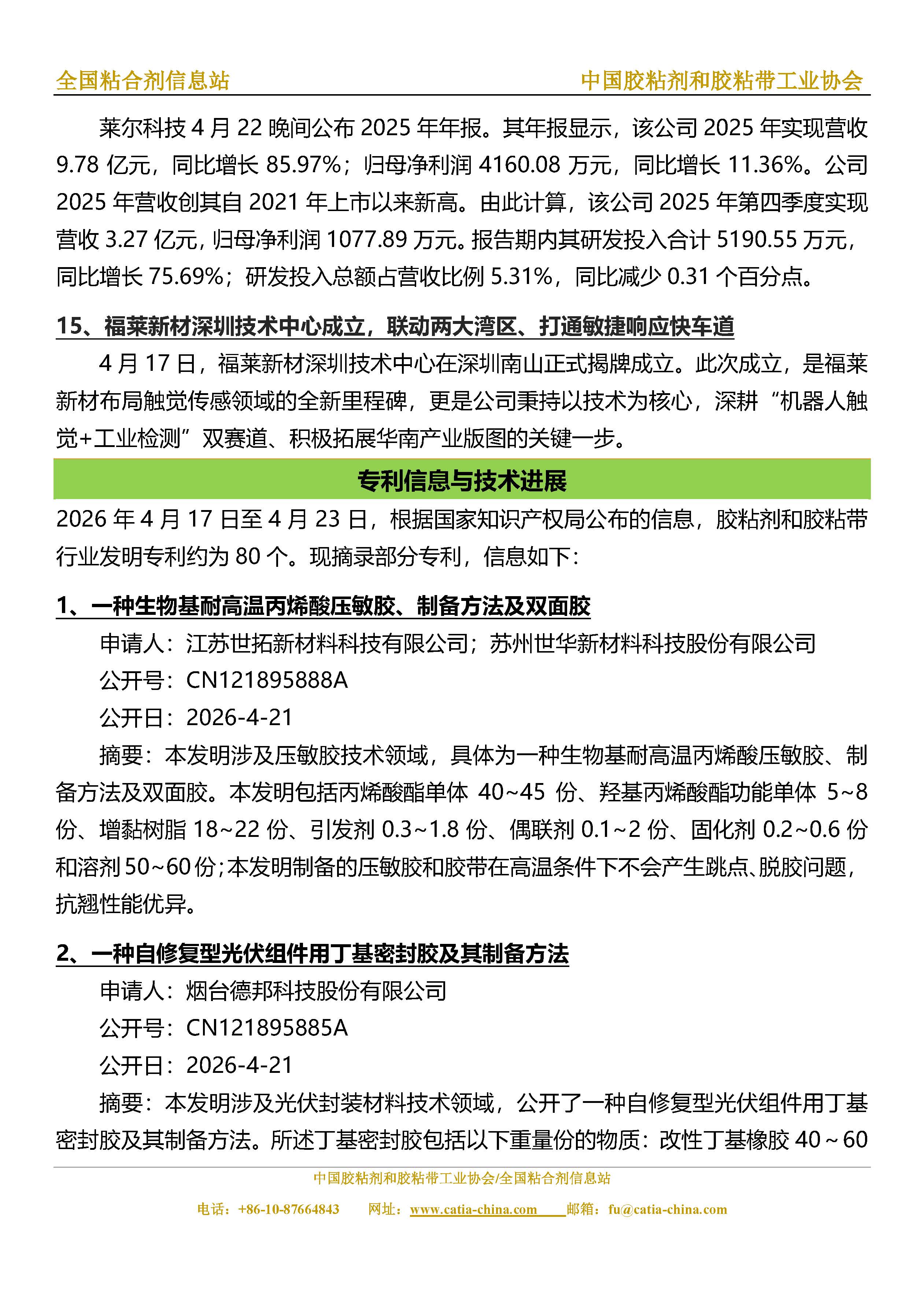 胶粘剂和胶粘带行业信息周报