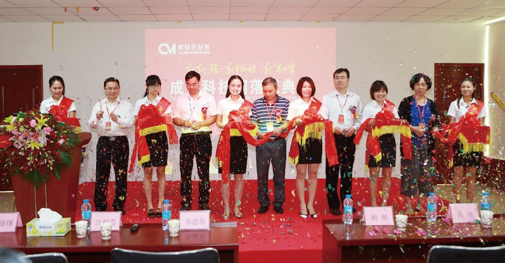 随着研究的深入,技术配方的积累,我们自己生产的产品性能明显好过外购厂商的产品,并且性能稳定,只是颜色变化有点大。我们自产的产品售价要高一些,开始说服客户很困难,但越来越多的客户被我们说服,经过实际使用检验,认可了我们。信任我们的那些客户多是对质量关注度高、品牌信誉强的客户,这让我们的客户层级也提升了。十六年过去了,我们在稳定热熔胶品质方面积累了丰富的经验,对热熔胶的理论有较深入的研究,不断地进行技术投入,建设了强大的研发团队,创建了高大上的成铭创新中心,拥有功能齐全的实验区,流变仪、大型涂布机、多角度多温度剥离力测试机、环型初粘力测试仪、恒温恒湿实验室等检测实验设备应有尽有,成铭热熔胶产品越来越稳定,得到广大客户的信赖。面对未来,我们在极热、极寒、强粘力、耐溶剂、无气味、易涂布等方面,将做更多的研究,以满足客户不断变化且提高的要求。