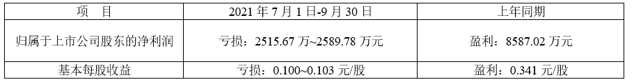 2021年第三季度预计业绩情况: