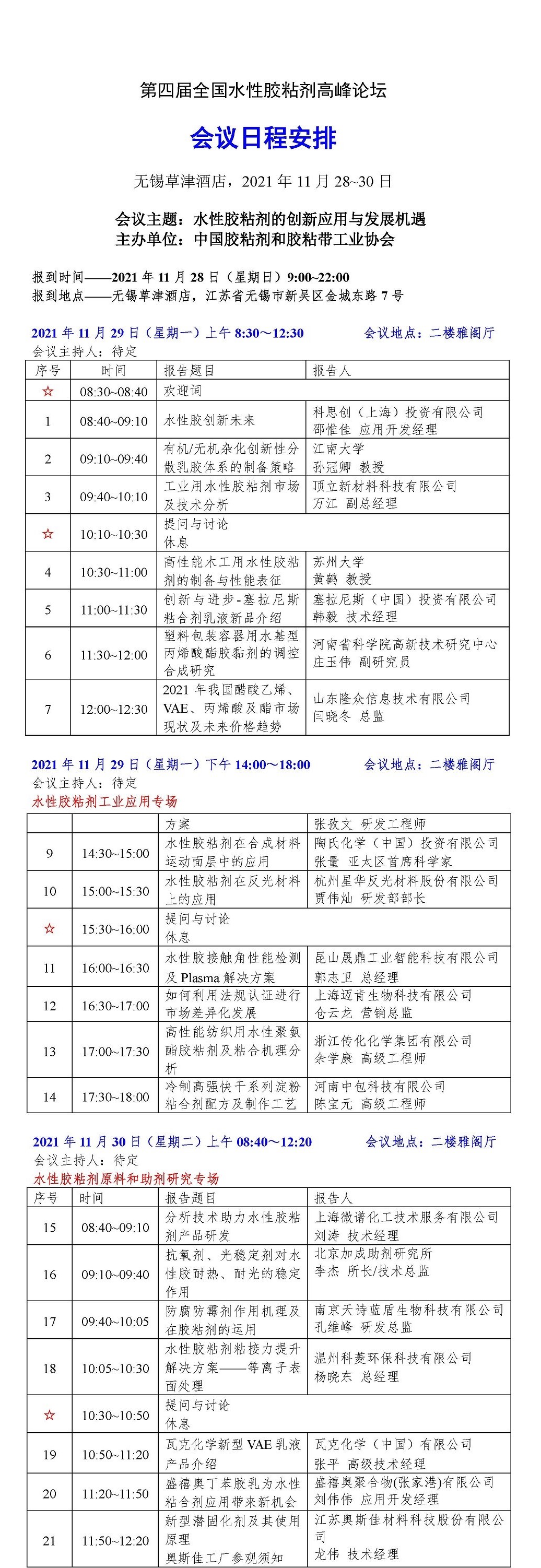 第四届全国水性胶粘剂高峰论坛会议日程安排