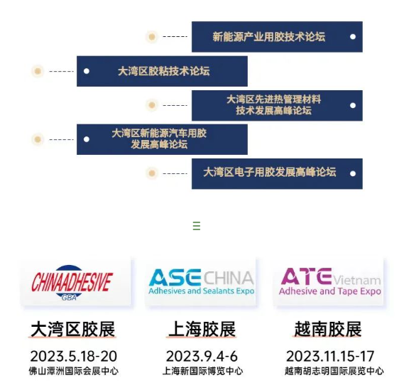 国际胶粘剂及密封剂展会自1997年起开始创办,深耕胶粘剂、密封剂和薄膜行业26年,凭借强大的品牌影响力和市场号召力,胶展整合全球优质资源,助力专业市场蓬勃发展。大湾区国际胶粘剂及密封剂展(China Adhesive GBA)将于2023年5月18日-20日与广东佛山潭洲国际会展中心隆重举办。大湾区胶展专为粤港澳大湾区及华南区域量身打造,专为电子、半导体、汽车、锂电、新能源、医疗科技、航空航天、交通运输、智能家居九大行业赋能,提供最新且前沿的粘接、密封、灌封及功能性用胶新思路和解决方案。