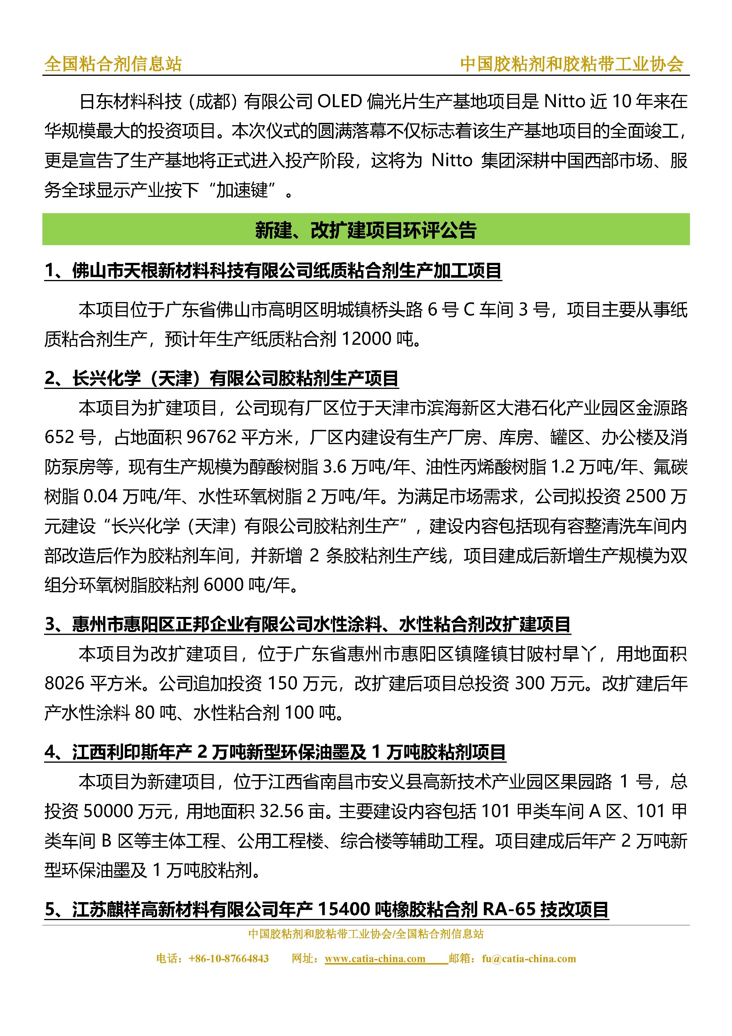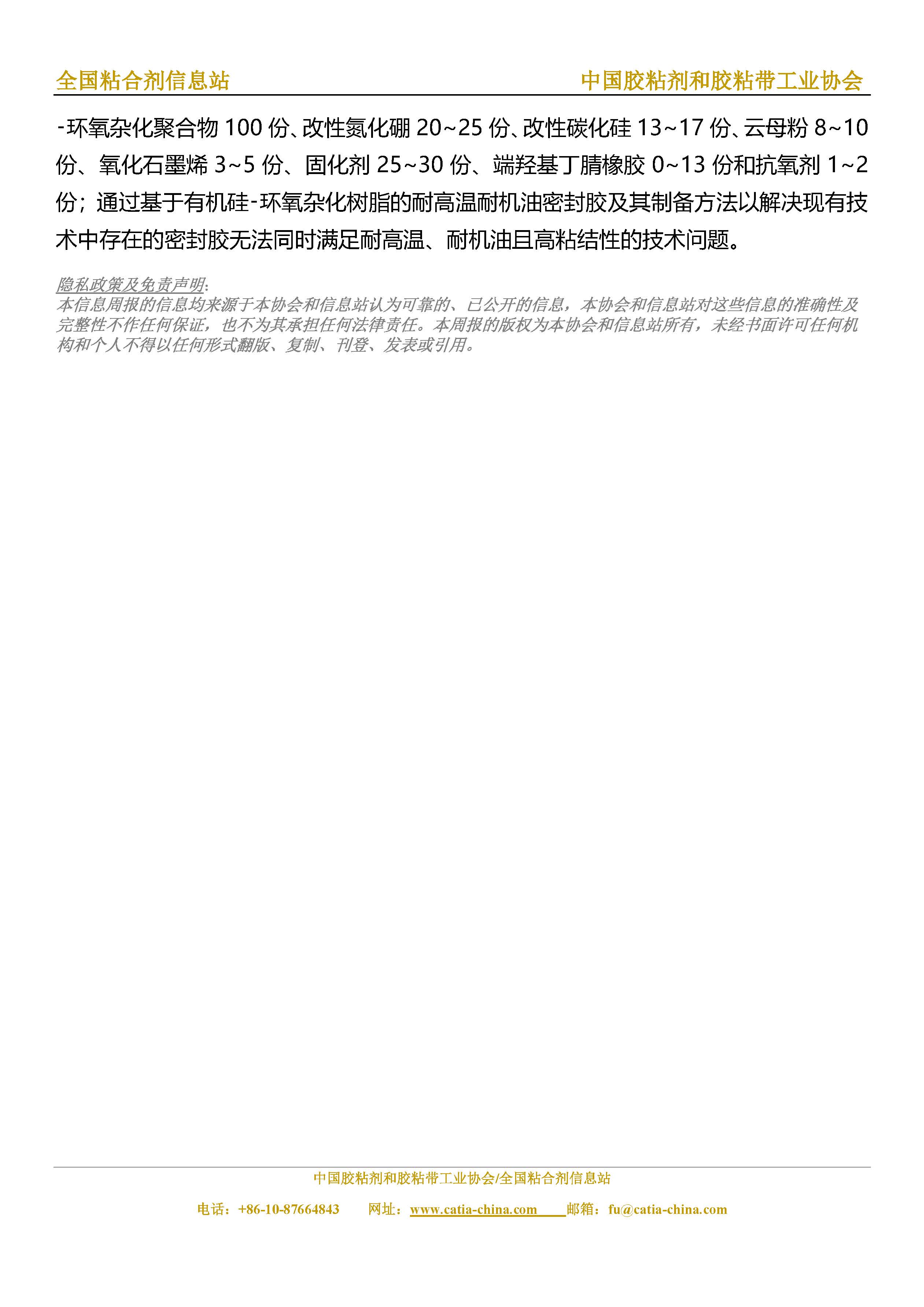 胶粘剂和胶粘带行业信息周报