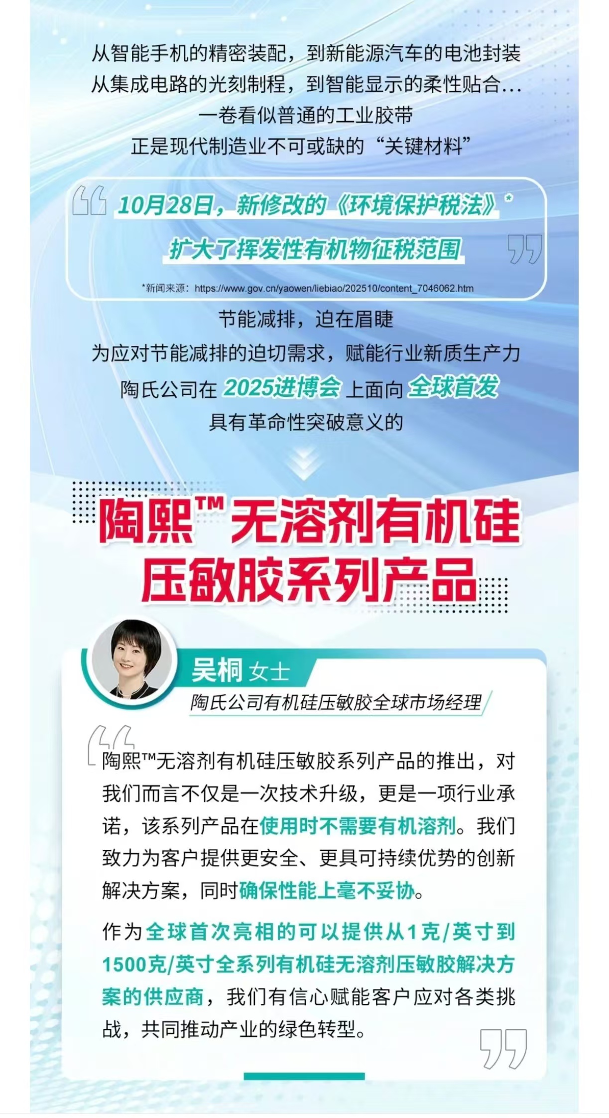 陶氏公司全球亮相陶熙™无溶剂有机硅压敏胶系列产品