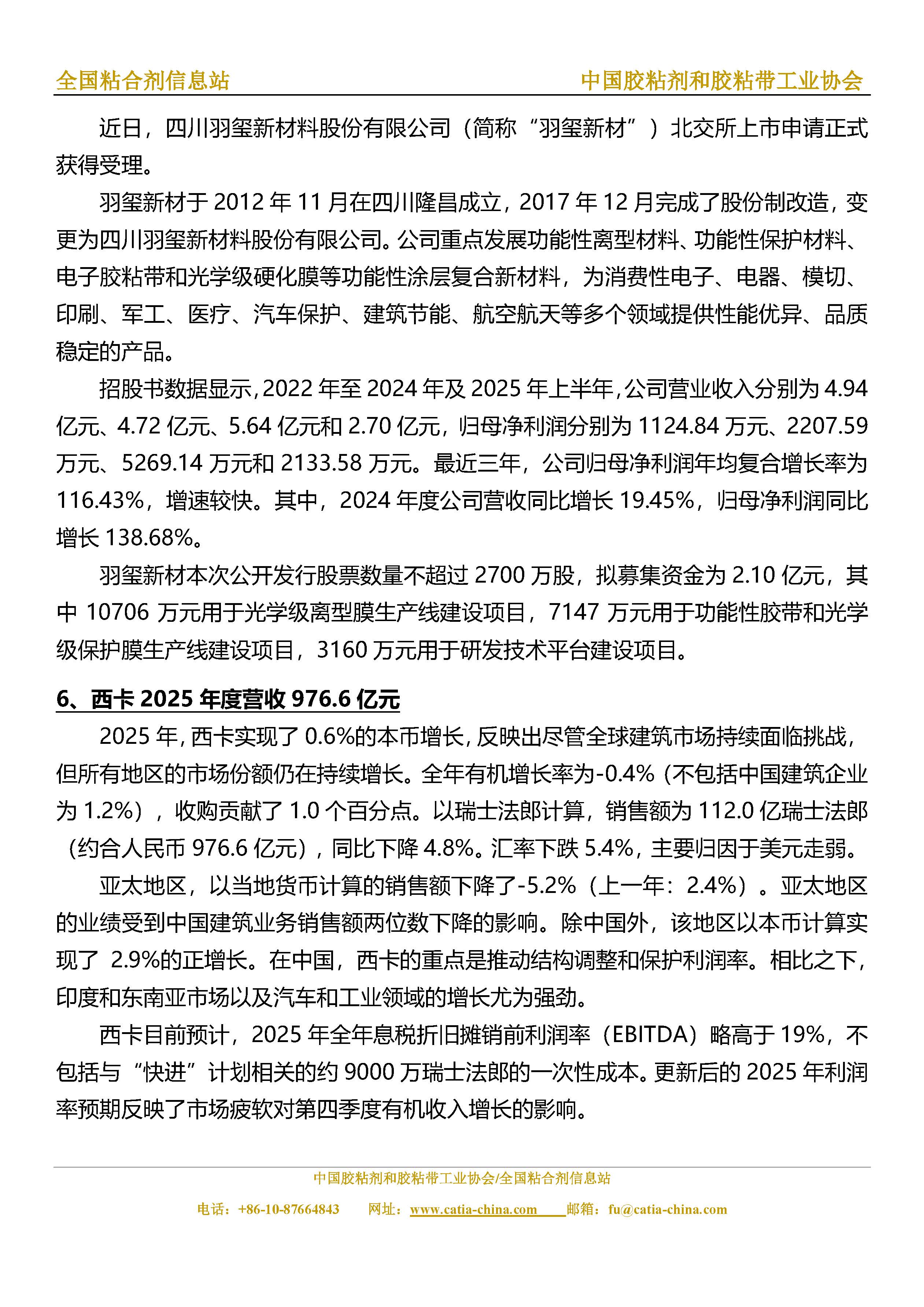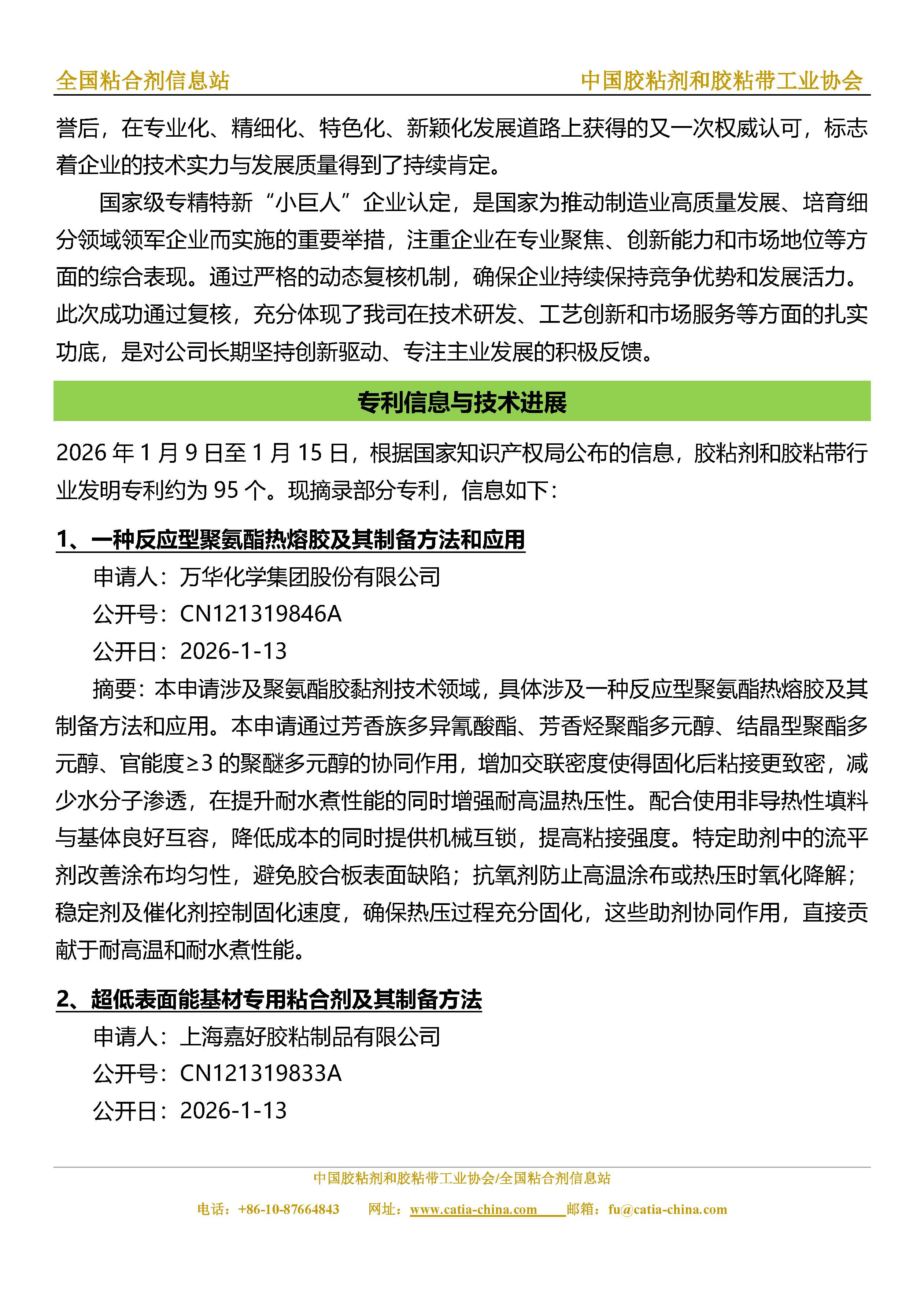 胶粘剂和胶粘带行业信息周报