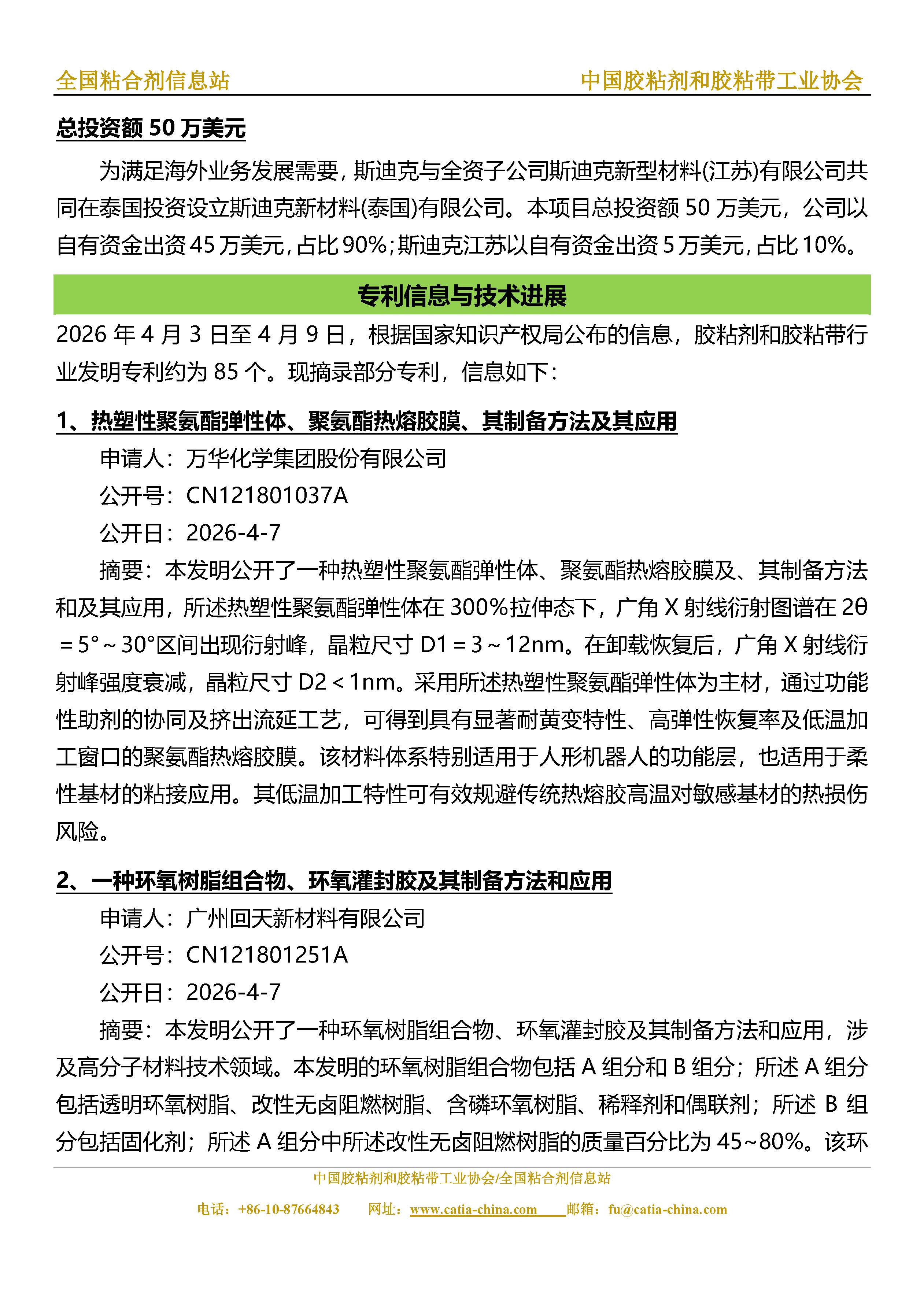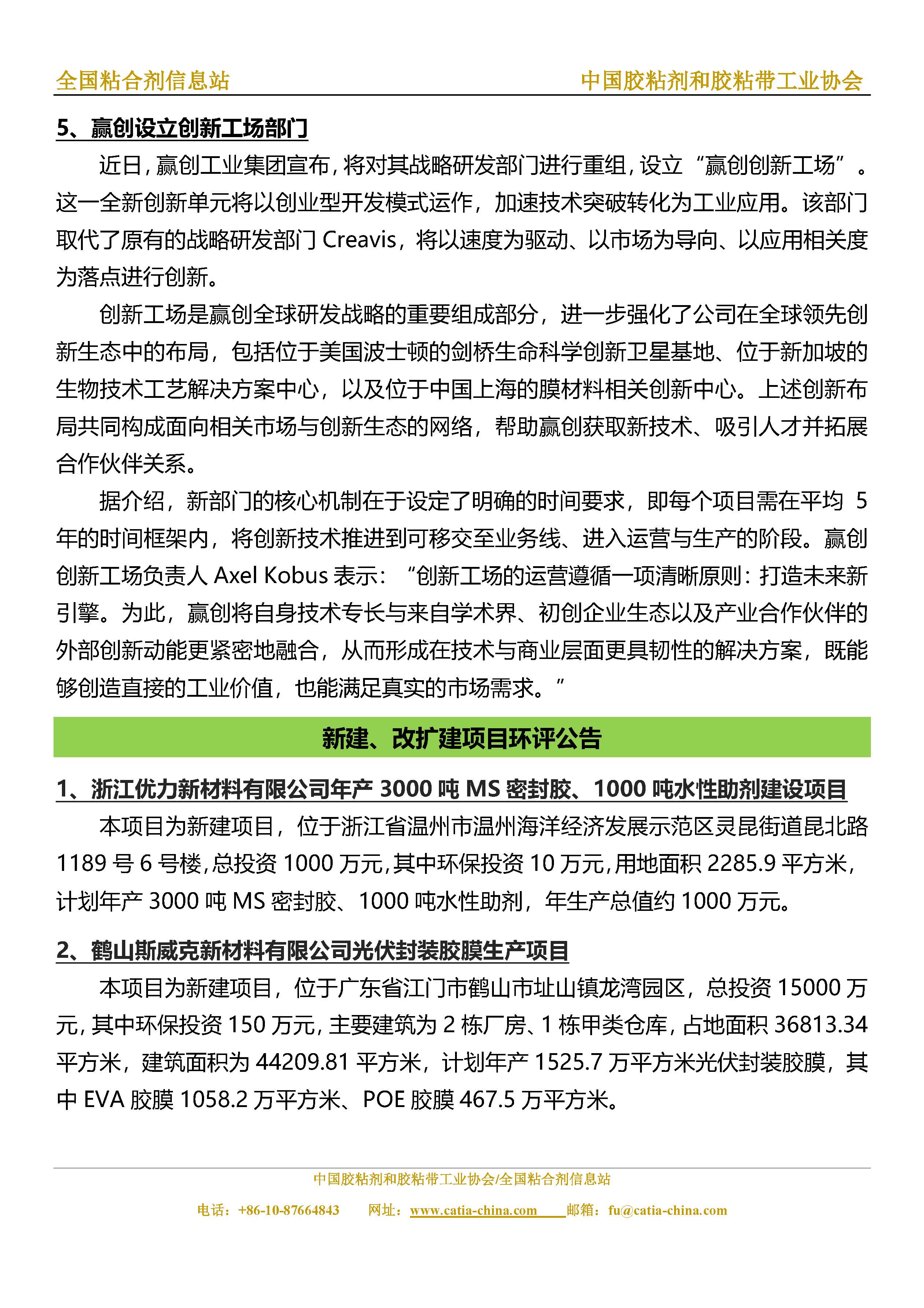 胶粘剂和胶粘带行业信息周报