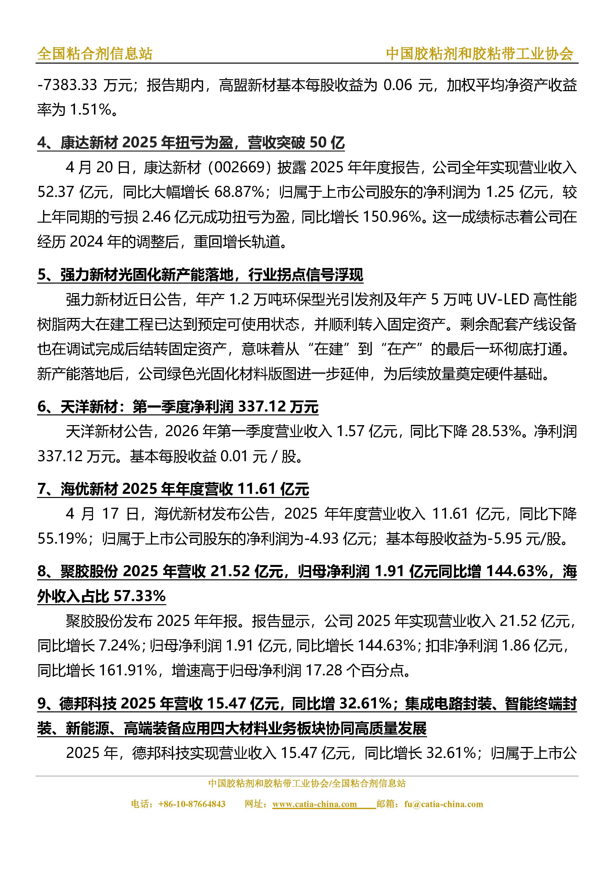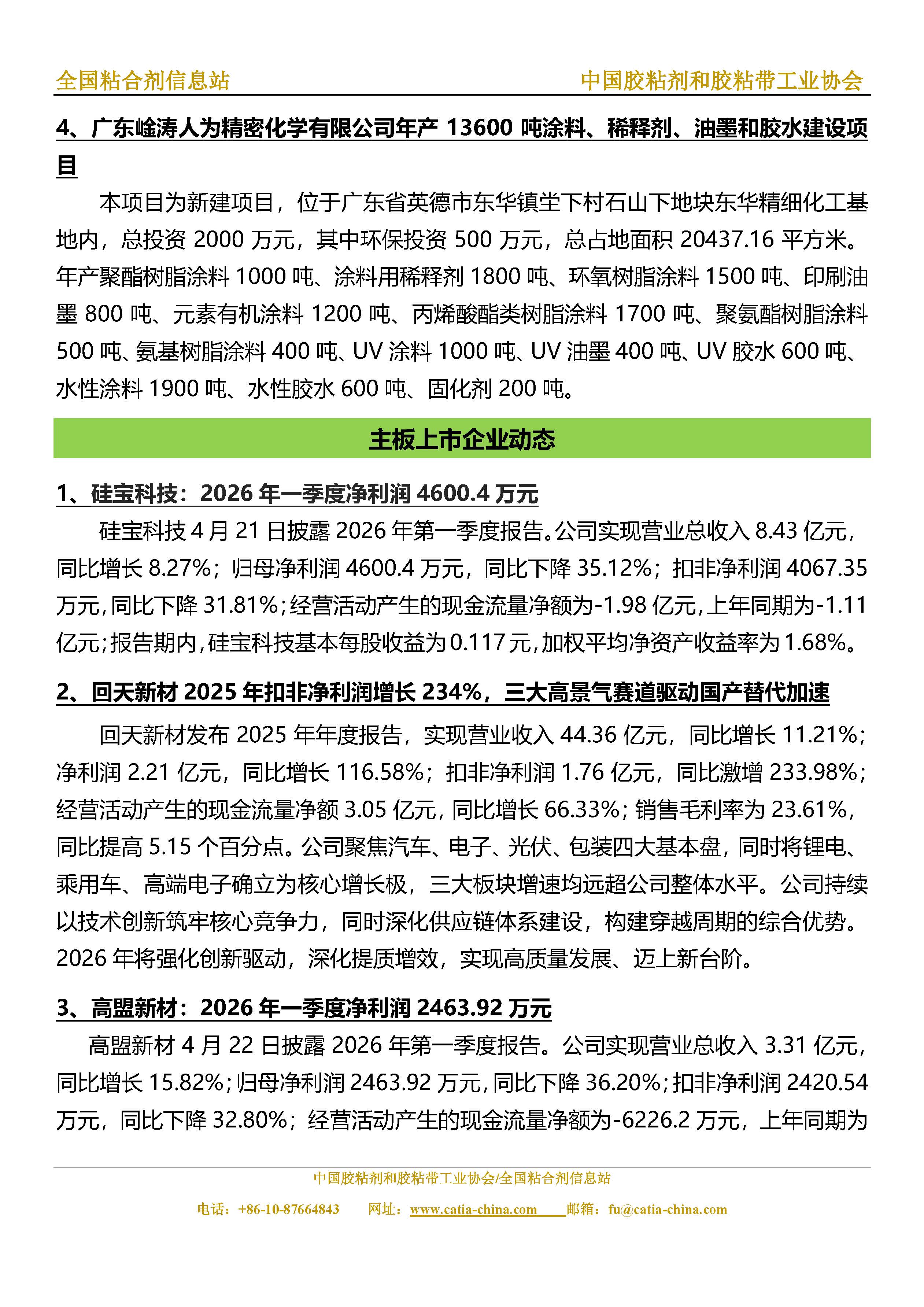 胶粘剂和胶粘带行业信息周报
